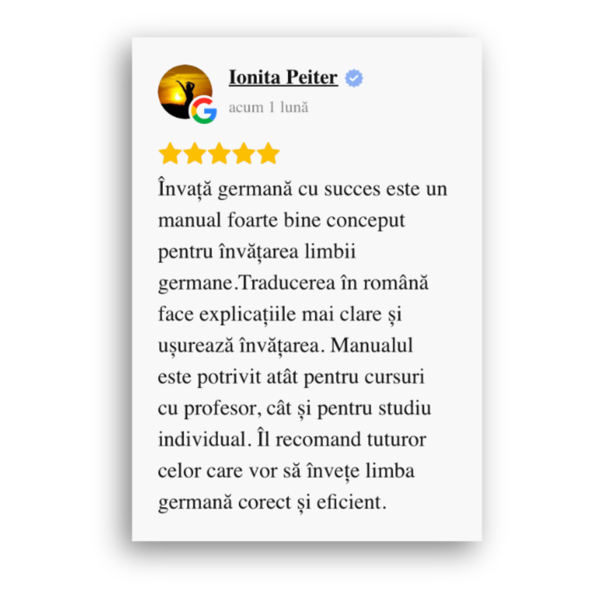 Perfect pentru românii din Germania – cu traduceri clare în fiecare lecție. -
